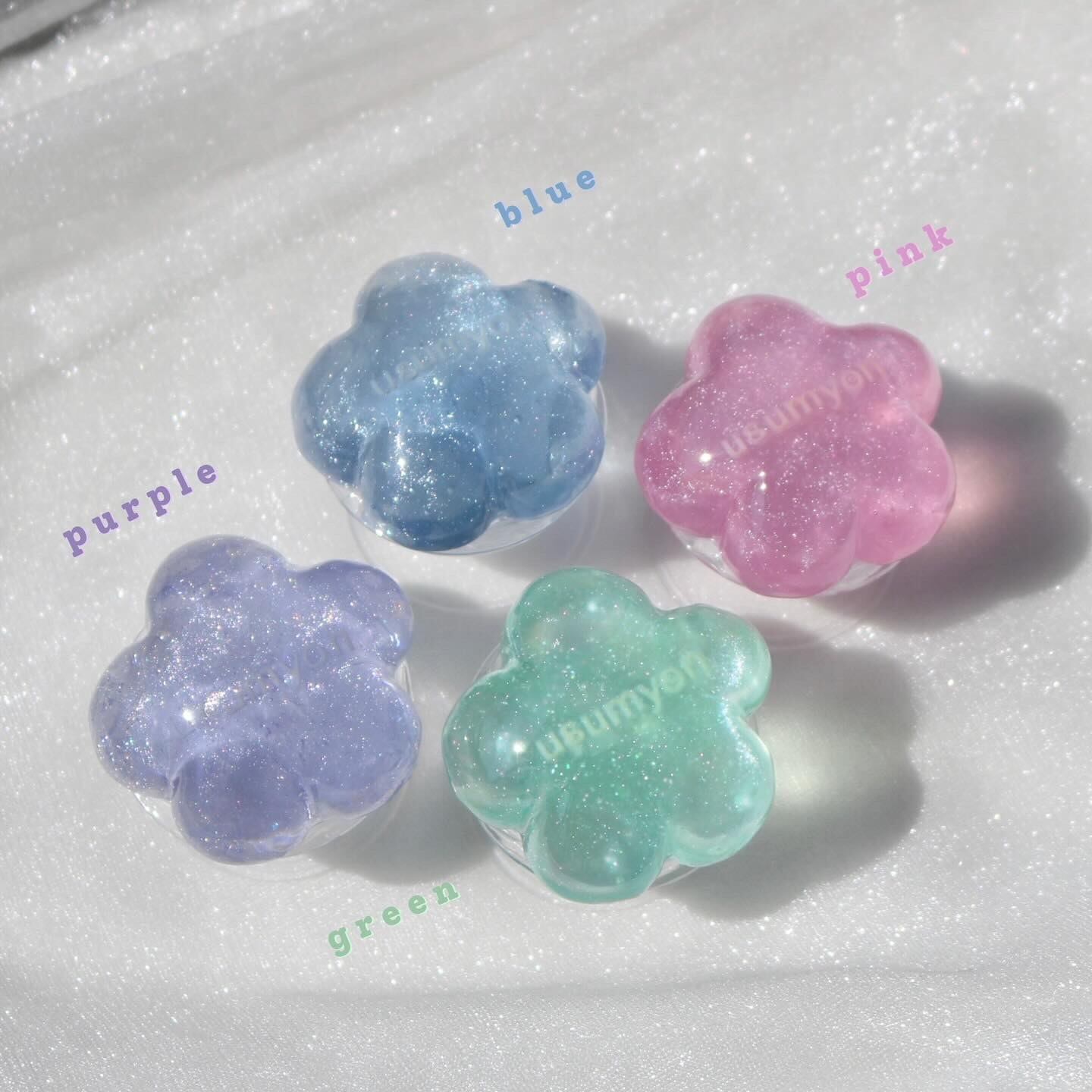 usumyonのロゴを閉じ込めたキラッキラッのスマホグリップができました・:*+.