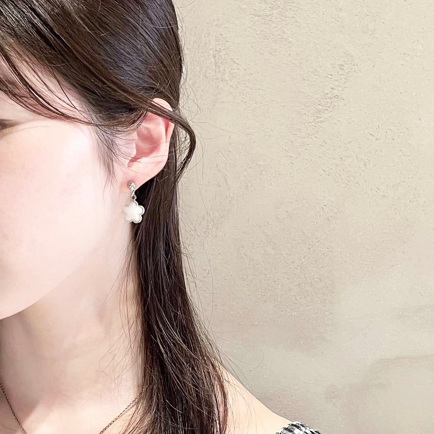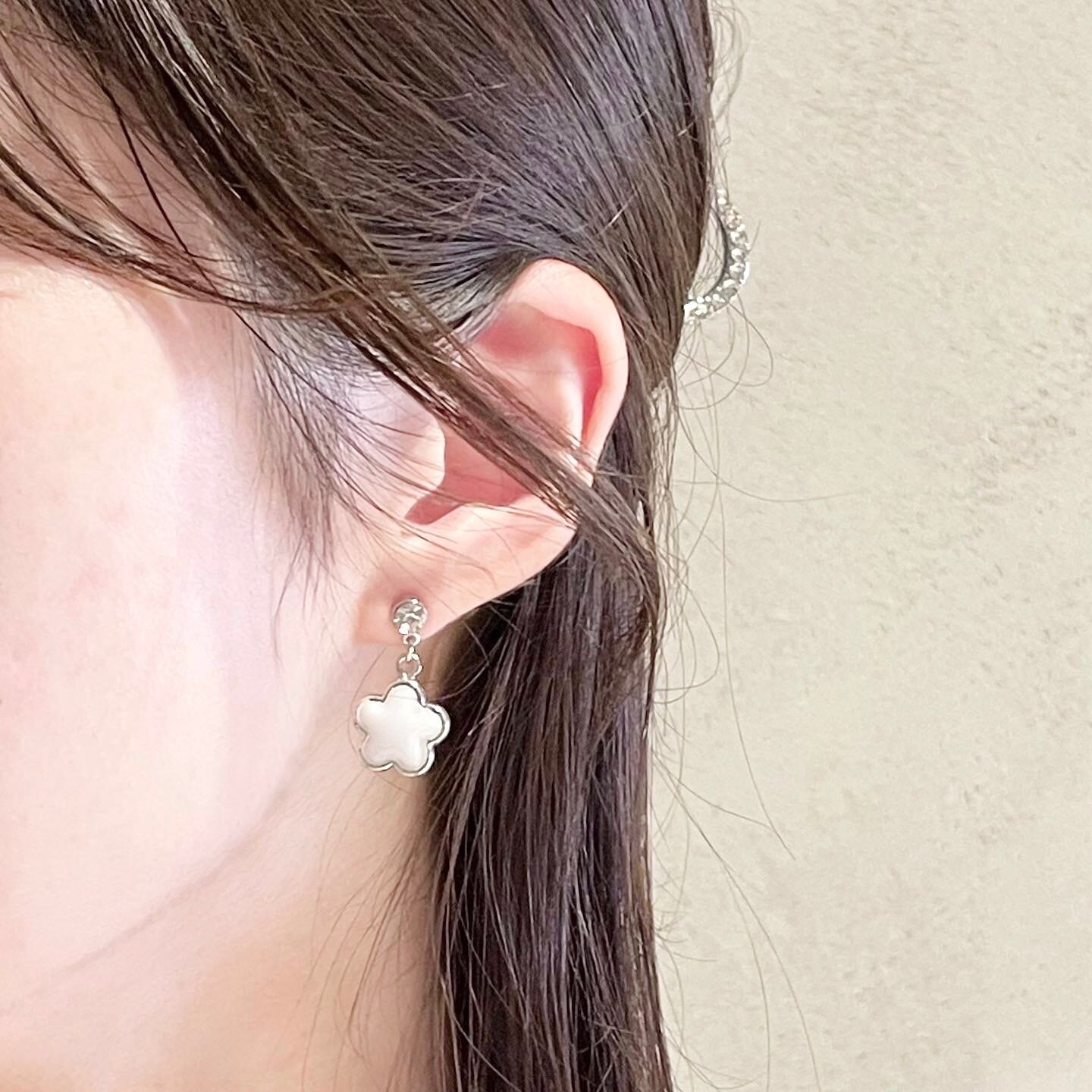 우유 / milk 小ぶりでかわいいホワイトカラーのフラワーピアス