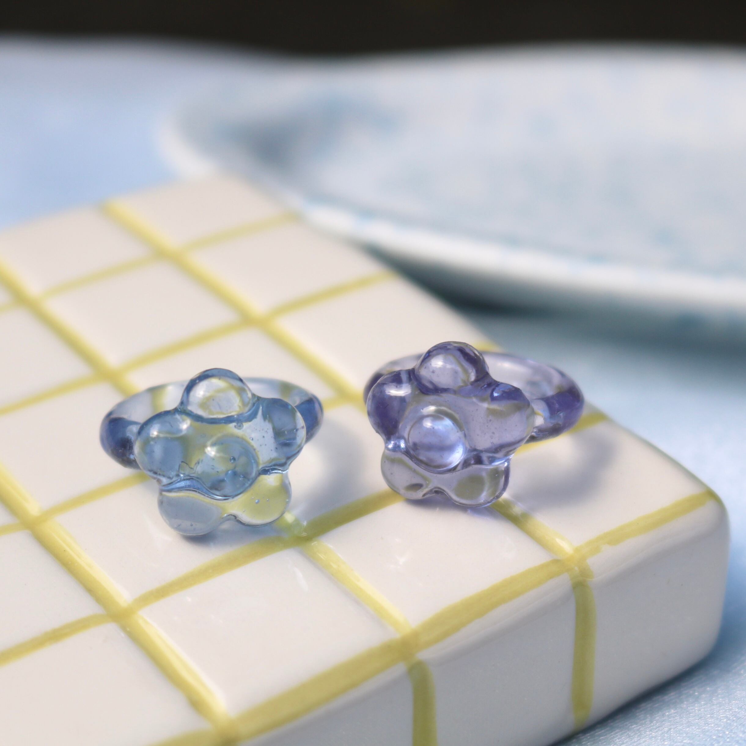 ブルーとパープルの透明なリング